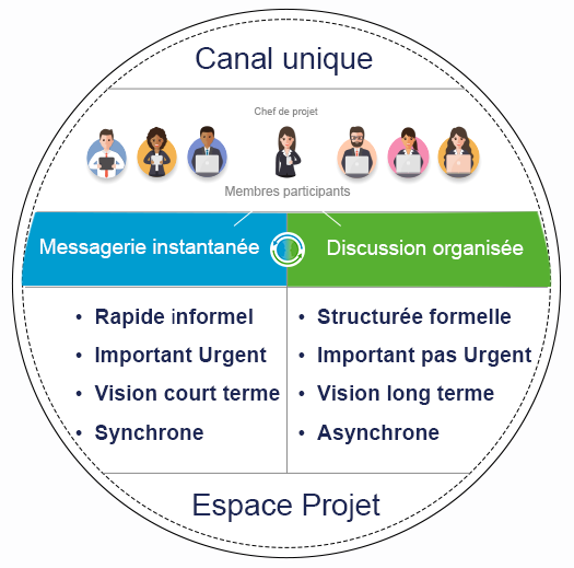 • Discussion organisée : Si les destinataires sont dans des fuseaux horaires différents ou ont des horaires chargés, une discussion organisée permet chacun de répondre quand il le veut sans la pression de l’urgence.