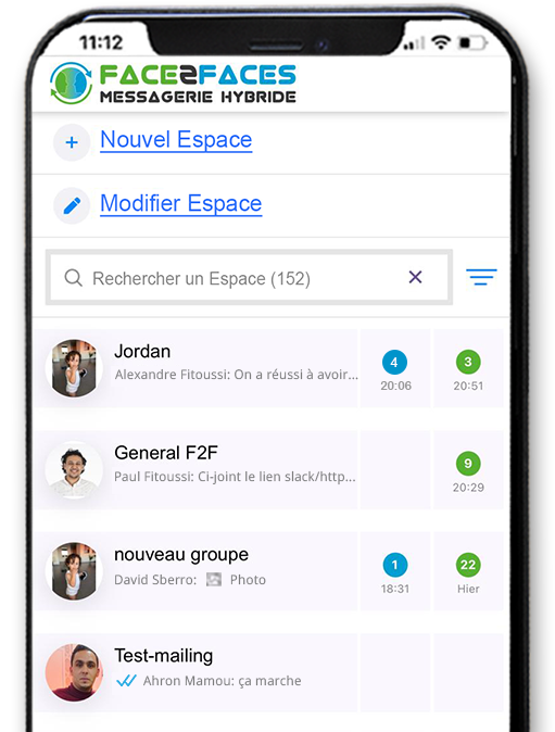 Découvrez Face2faces Hybride: une Solution Novatrice qui Centralise et facilite vos Echanges Professionnels en Unifiant une interface de Messagerie Instantanée à une interface de Discussions et Documents Organisés inspirée de l’e-mail.