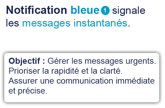Vivez une expérience unique avec les notifications bleues pour l’action immédiate et les notifications vertes pour le suivi et interactions structurées, cette distinction visuelle permet une identification rapide de la nature des échanges.